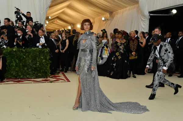 Ainsi la cotte de mailles et le camail deviennent deux emblèmes féministes, comme en témoigne la tenue qu’arbore Zendaya au Met Gala 2018, dans une tenue Versace qui évoque une Jeanne d’Arc des temps modernes.